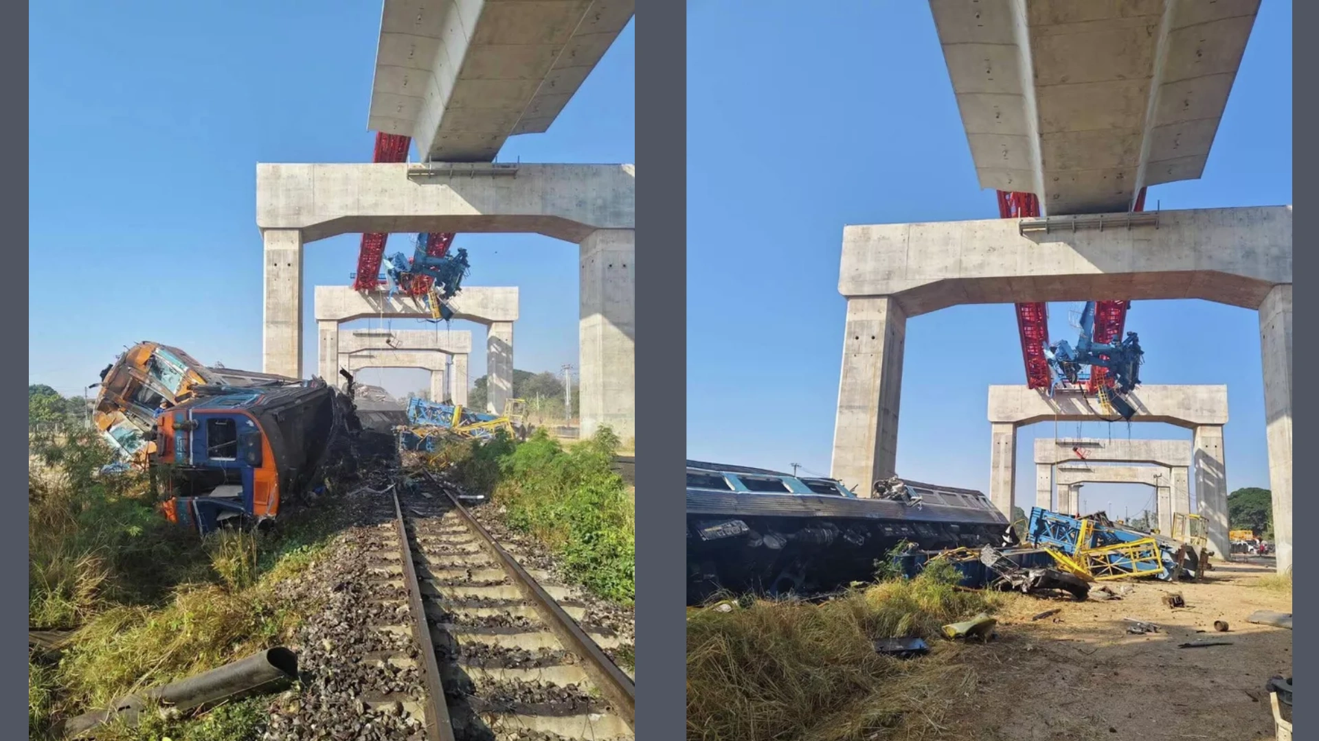 According to Thai media, the incident occurred in the morning when a train traveling from the capital Bangkok to the country’s northeast derailed and overturned after a construction crane collapsed onto it.