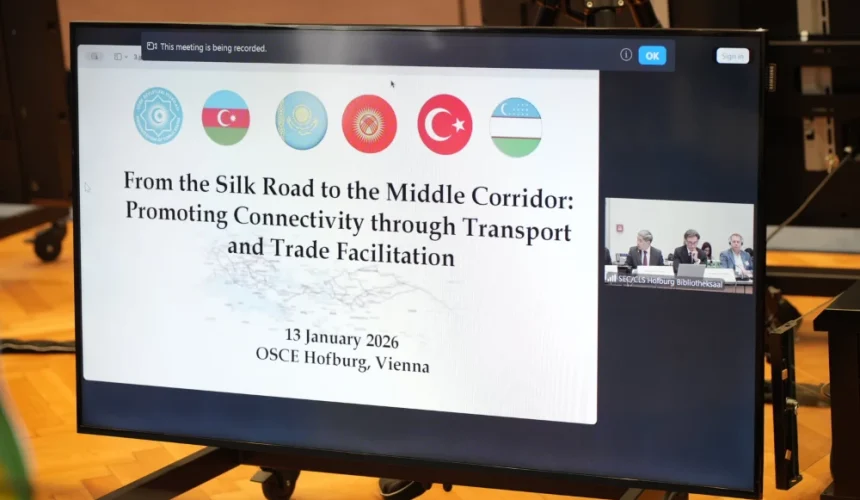 The Roundtable Meeting titled “From the Silk Road to the Middle Corridor: Promoting Connectivity Through Transport and Trade Facilitation” was held on 13 January 2026 at the OSCE Hofburg Building (Bibliotheksaal) in Vienna, within the framework of Turkish Week in Vienna organized by the Organization of Turkic States (OTS).