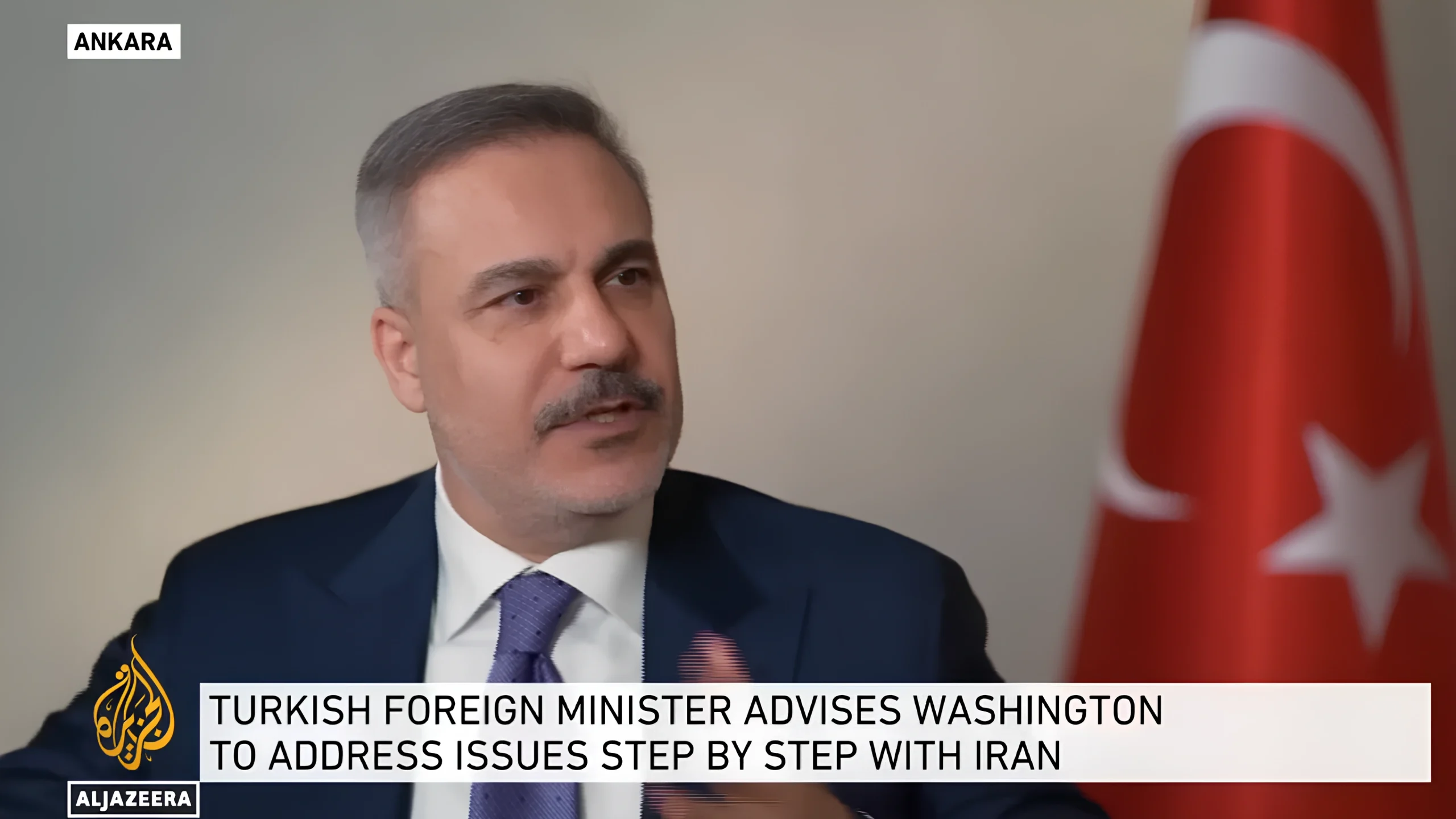 Turkish Foreign Minister Hakan Fidan said in an interview with Al Jazeera that attacking Iran would be wrong, stating, “My advice to my American friends is this: close the files with Iran one by one.”